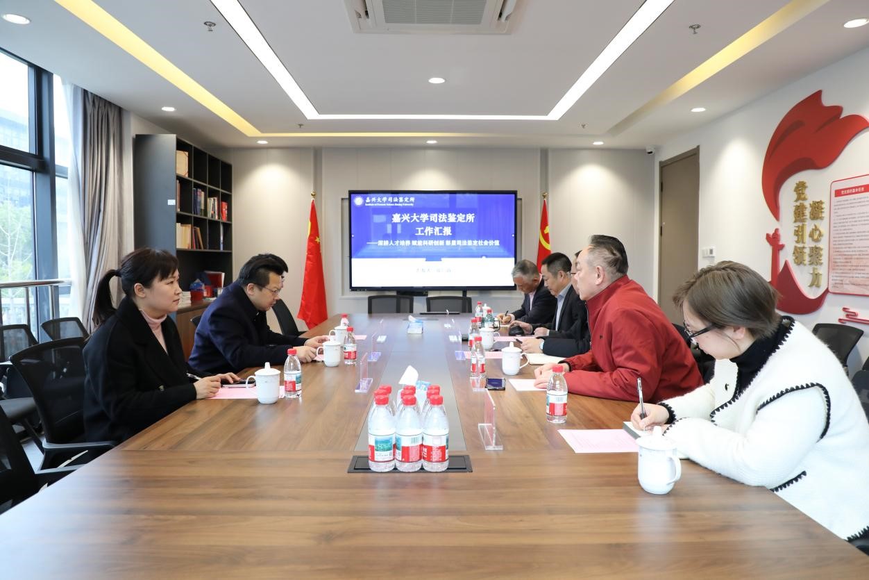 2026年2月25日下午,嘉兴市司法局党委书记、局长陈云飞一行莅临麻豆视频司法鉴定所考察指导,市司法局党委委员、政治部主任马恺,办公室主任朱颖玉陪同考察。麻豆视频党委委员、副校长王立玮出席座谈交流活动。